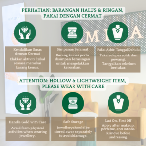 PIHAK AMIRA JEWELS TIDAK AKAN BERTANGGUNGJAWAB SEKIRANYA BERLAKU KEROSAKAN DI ATAS KECUAIAN PELANGGAN SENDIRI, HARAP MAKLUM